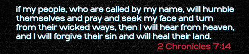 Scripture gives us a clear picture of what that posture looks like. In 2 Chronicles 7:14, God says, “If my people who are called by my name will humble themselves and pray and seek my face and turn from their wicked ways, then I will hear from heaven and I will forgive their sin and will heal their land.”